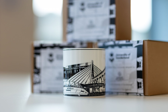This fine bone china mug is the perfect addition to any tea or coffee lover's collection. Made in the UK, it features an artist-designed pattern by Corinne Lewis-Ward, an esteemed alumna of MA Photography 2008. And the best part? All profits from this mug go towards supporting the Futures Fund, our flagship scholarship programme. Not only will you enjoy your beverages in style, but you'll also be contributing to a great cause. The sturdy construction and beautiful design make this mug a functional piece of art, perfect for use at home or in the office. Get yours today!